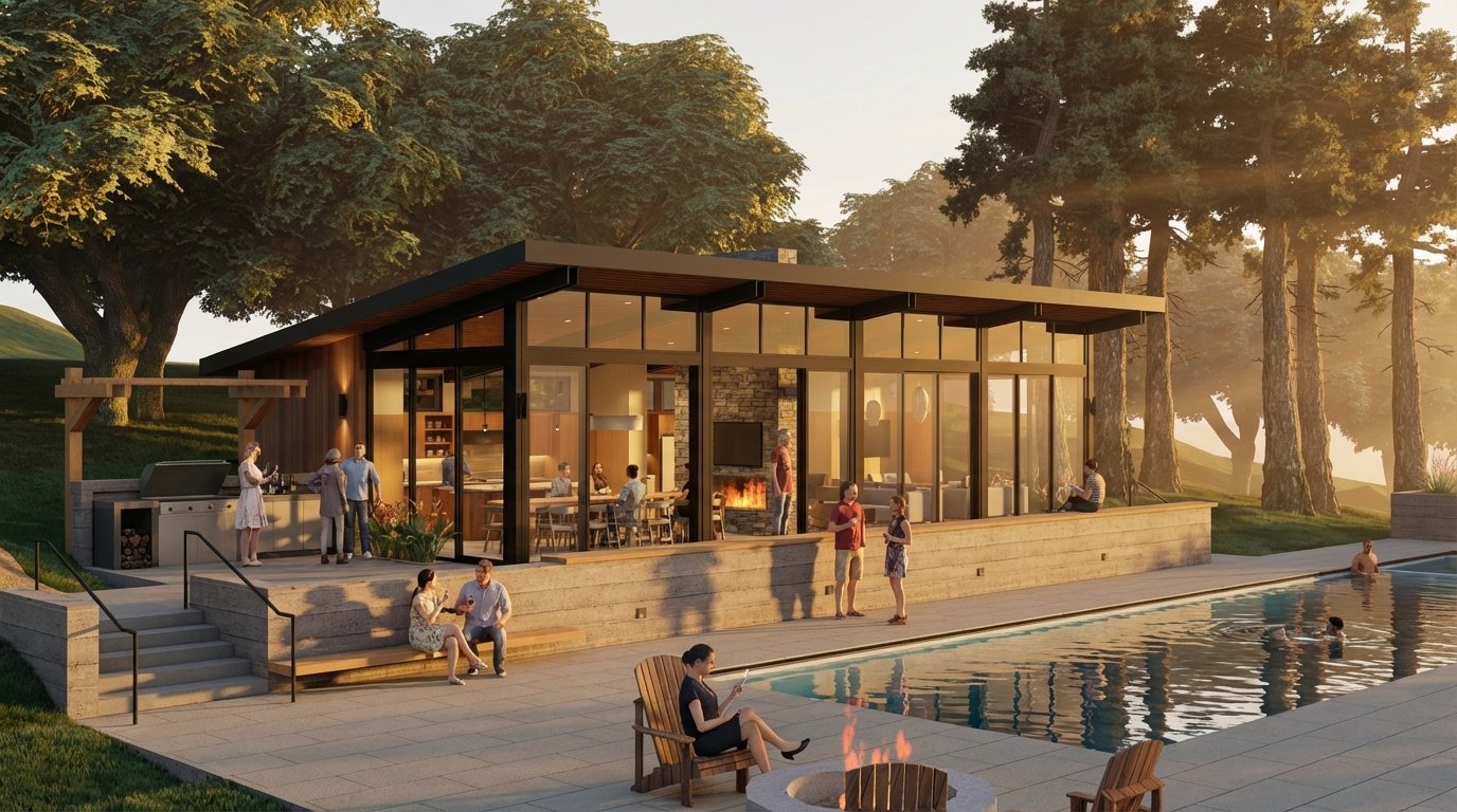 Situated in the rolling hills of Sonoma County, a secluded Santa Rosa residence is enhanced by the addition of a 1,200 sqft pool house. Its owners, winemakers themselves, tasked Stanton Architecture with honoring their fondness for the prevailing wine country aesthetic of steel, glass, and wood.