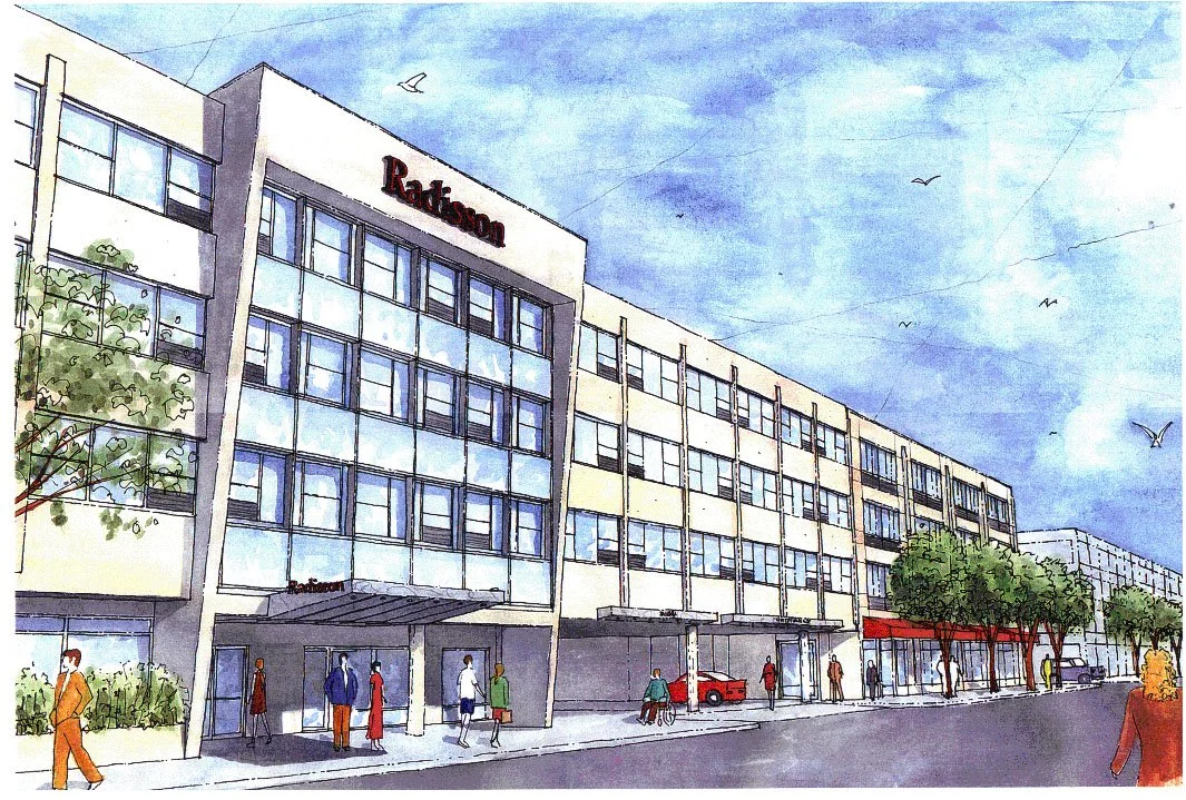Over the past 15 years, Stanton Architecture has worked on several renovations of this former 1950’s Travelodge. As a result this hotel was transformed a vibrant mixed-use project that includes continuous street level retail, structured parking and a 71,000 sq. ft. addition which includes 25,000 sq. ft. of retail, 106 new hotel guestrooms and a new parking level. Within the past several years, we completed a renovation of the fitness room, revamped their retail space, and added several more guestrooms to the hotel.
